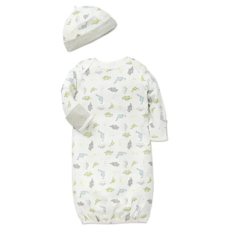 Little Me - Tiny Dinos Gown & Hat, White Print, 0/3M