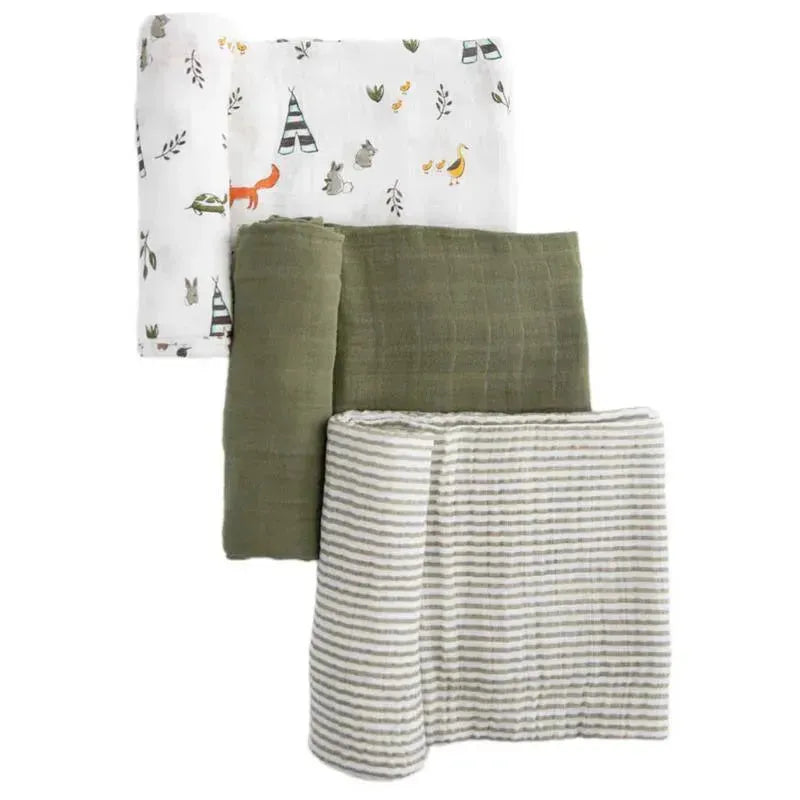 Little Unicorn - 3Pk Cotton Muslin Swaddle, Forest Friends 2