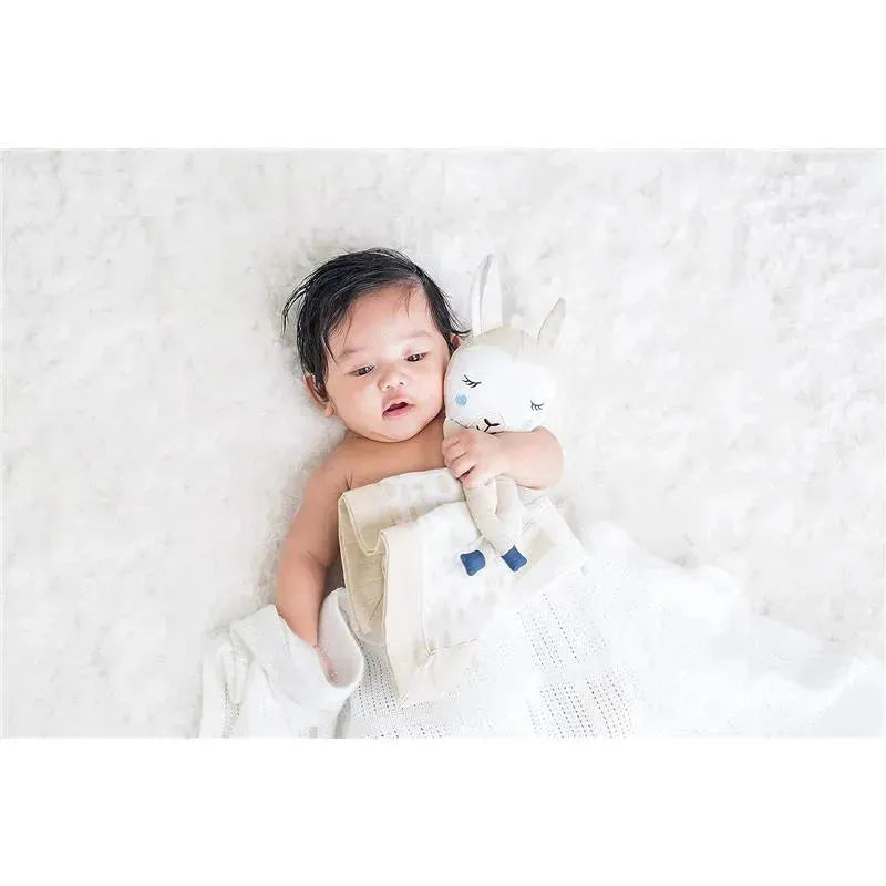 Little hands love to hold this darling combination of security blanket and toy. Made from soft, gentle muslin, lovey is a sleepy-eyed llama buddy for cuddle time, bedtime, or anytime baby needs comforting. Your little one will want to take it everywhere. Machine washable and easy to keep clean, measures 15 x 15-inches. Muslin lovey is prewashed, and gets softer with washing and use. Brought to you by Lulujo Baby, a proudly Canadian company behind premium baby essentials. At Lulujo Baby, our love is in the details.