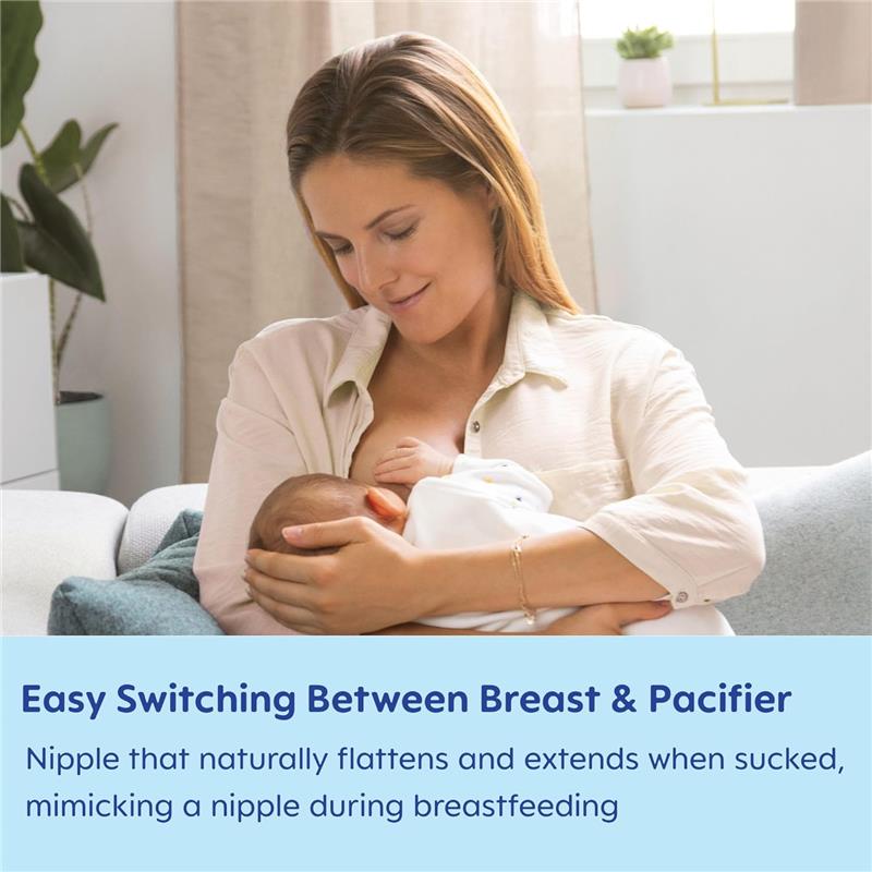 MAM orthodontic pacifiers feature an innovative breastfeed pacifier nipple designed to promote healthy oral development so you can soothe your baby with confidence, as well as a symmetrical nipple that fits perfectly in your baby's mouth at all angles. With the help of a built-in air channel, our pacifiers for baby naturally flattens and extends when sucked, mimicking a human nipple during breastfeeding. MAM’s medically silicone pacifiers feature life-like, SkinSoft textured silicone that feels more natural, just like mom. With multiple pacifier shapes and shield sizes to pick from, MAM nipples are easily accepted by babies of all ages, with 94% nipple acceptance among babies tested*. Babies simply love the ease and comfort of latching onto MAM nipples. Sterilize baby’s MAM pacifier in the microwave using the convenient MAM self- sterilizing case. Pacifiers kept in the closed box will remain clean for up to 48 hours: Fill pacifier case with water. Place pacifier in the pacifier case with the nipple facing down. Follow pacifier package instructions for microwave setting.