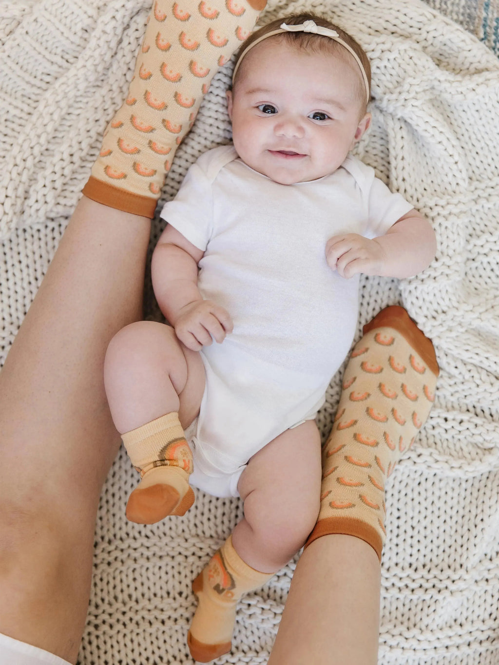 Mom and Baby can have cozy and coordinating feet with the Mama & Me Socks Set from JuJuBe × Studio Oh! Made of polyester and spandex for ultra-comfort, these cute and colorful matching socks are perfect for photos, lounging around the house, and making a “twinning” fashion statement on the go. The socks feature irresistible, on-trend designs that make a stylish addition to any mama-and-baby ensemble. The baby socks are for babies 3 to 12 months, and adult socks are one-size-fits-most.