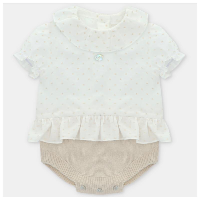 The Martin Aranda Baby Short Romper Volterra in Arena is a beautifully crafted piece designed for elegance and comfort. Made from premium woven fabric, this short romper features delicate detailing, a classic silhouette, and soft neutral tones, perfect for any occasion. Its lightweight and breathable material ensures your little one stays comfortable throughout the day. With its refined design and timeless appeal, this Martin Aranda romper is an ideal choice for stylish and sophisticated baby wear.