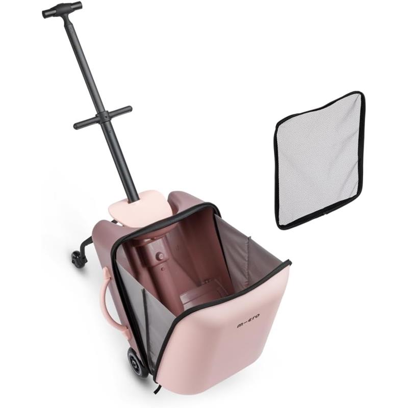 The Micro Allrounder Ride-On Cart is a multi-functional travel and shopping cart that will add convenience, fun and fashion to every trip with young children. Young children love riding the cart through the airport or on neighborhood errands, turning every trip into an adventure. The ride-on feature keeps children entertained and engaged, making the journey more enjoyable for parents and children alike. Detach the case to transform the cart into a lightweight, foldable push-trike that children can ride, offering even more versatility and fun. When traveling by air, the cart is compact enough to stow in most overhead compartments, and is lightweight for easy carrying. The case provides ample space to accommodate travel items, veggies from the market, groceries, and/or your child’s favorite toys. A removable net with zipper allows for compartmentalization of items for easy access, and helps you stay organized on the go. Parents find it easy to maneuver the Travel Cart with only one hand, leaving the other hand free to multitask as needed! The cart is surprisingly maneuverable and turns very easily. It can be pushed with the child in front of you, or pulled with the child behind you. The adjustable telescoping handlebar is a design element that ensures ergonomic comfort for the parent who is steering, and also allows for easy storage when the cart is not in use.