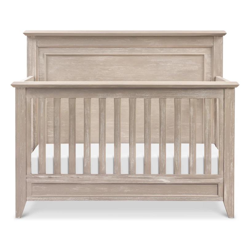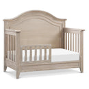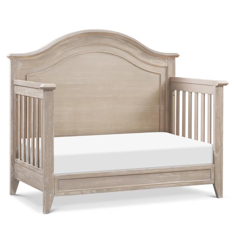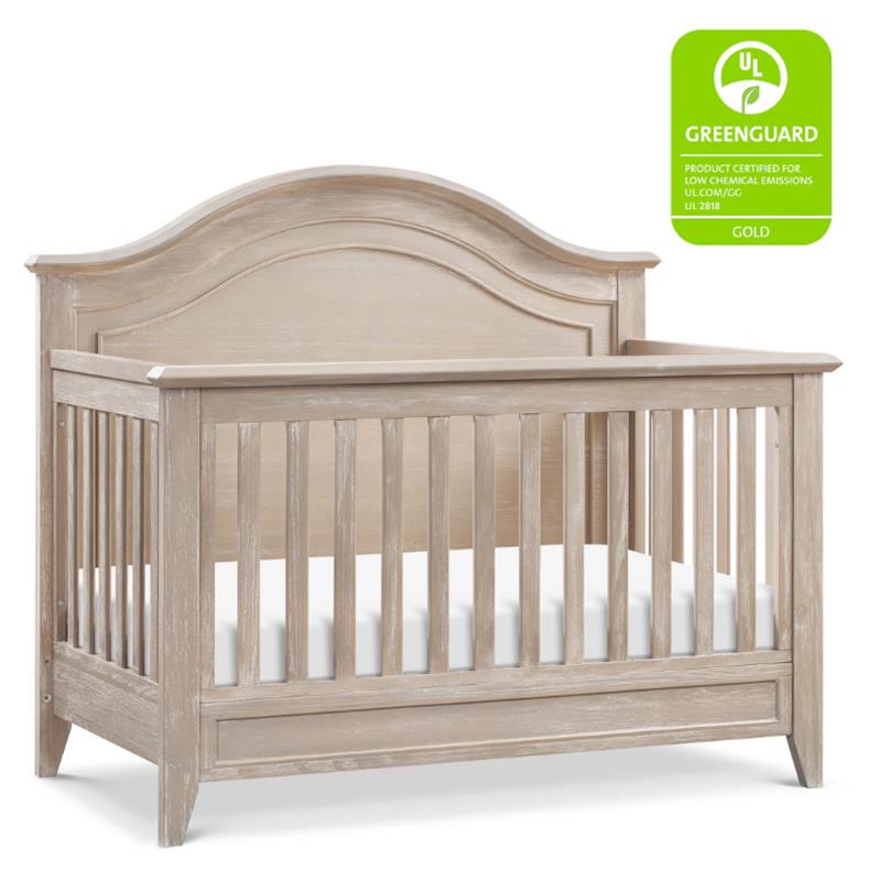 The Beckett Rustic 4-in-1 Convertible Curve Top Crib bridges the gap between traditional and modern design with its texturized wood finish, clean silhouette and thoughtful detailing. Featuring a raised back panel, elegant slats, simple tapered feet, and mitered cuts with contemporary 45 degree trimming, the Beckett Crib is a transitional piece that will grow with your family.