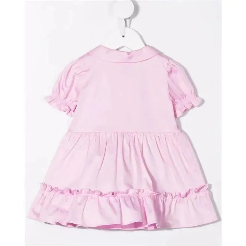 Moschino Baby - Girl Short Sleeve Ruffled Dress With Collar And Hearts, Light Pink