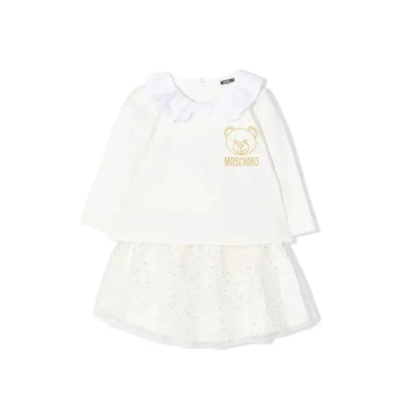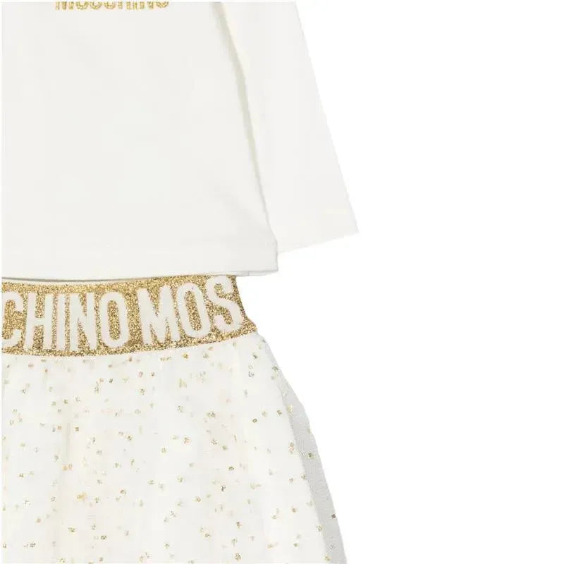 Moschino Baby - Girl T-Shirt With Collar & Skirt With Logo, Cloud
