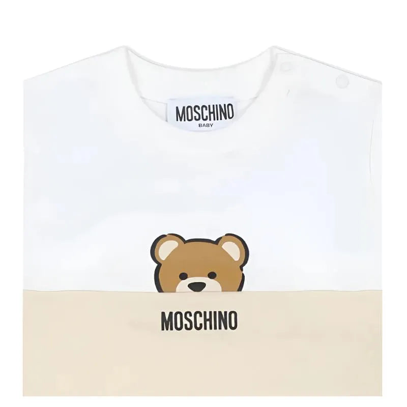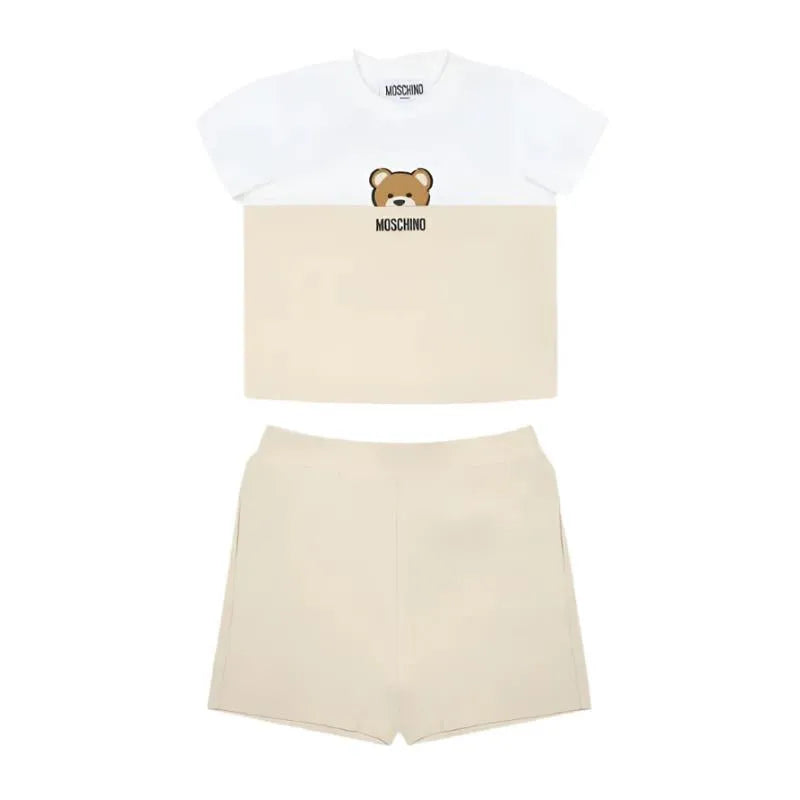 Moschino Baby - Short Sleeve Tee And Shorts Set With Bear Print In Gift Box Beige