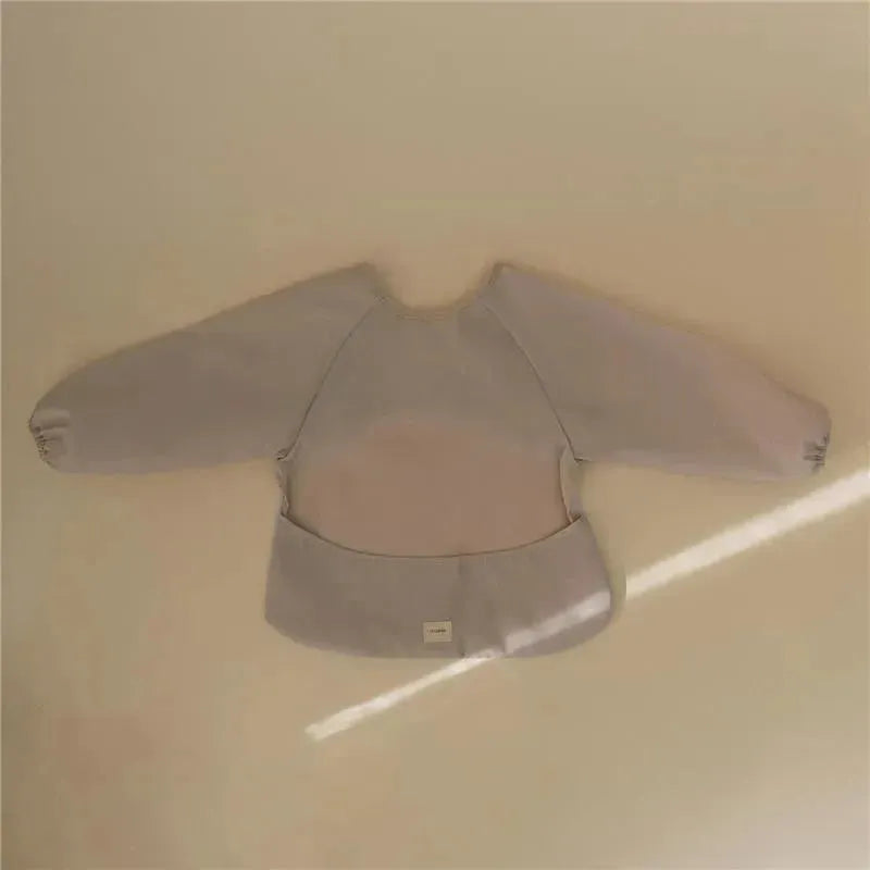 Designed for Comfort: Made with 100% Polyester and 100% Cotton Trim, the soft long sleeve bib's wide pocket easily catches food while the bib stays secure and fully covers outfits. With a velcro closure at the back of the neck, it's perfectly sized for littles between 6 and 24 months.