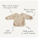 Keep the kids clean at mealtimes, during art projects or in other messy moments with our water resistant long sleeve bib. Its wide pocket easily catches food while the bib stays secure and fully covers outfits. With a velcro closure at the back of the neck, it's perfectly sized for littles between 6 and 24 months. Parents appreciate the wipe-clean material that's also safe for washing machines, so you can embrace the day without clothing stains.