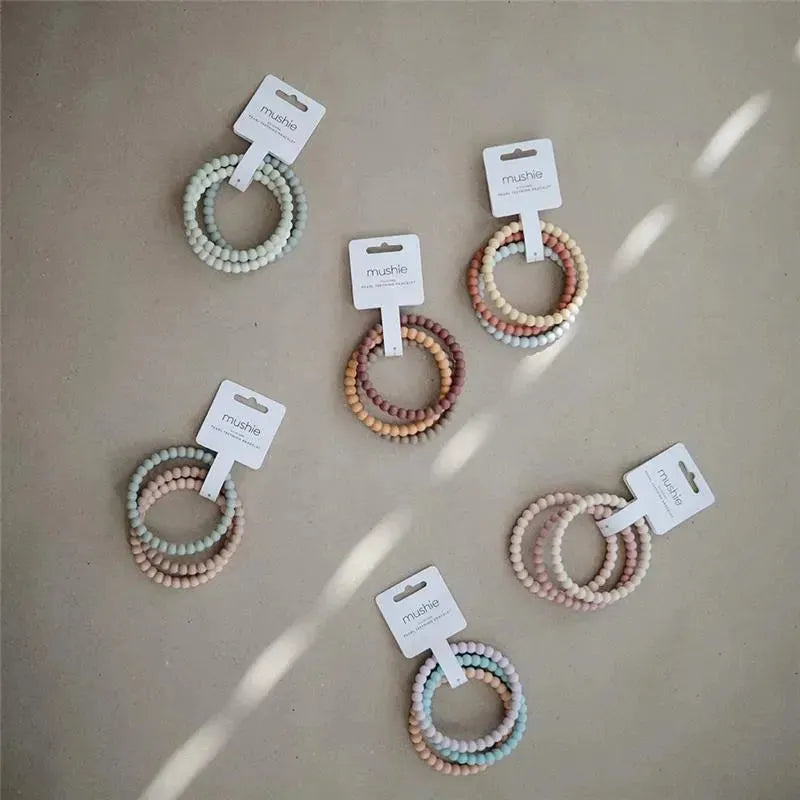 Mushie Silicone Pearl Teether Bracelets Clary/Sage/Tuscany/ Desert Sand