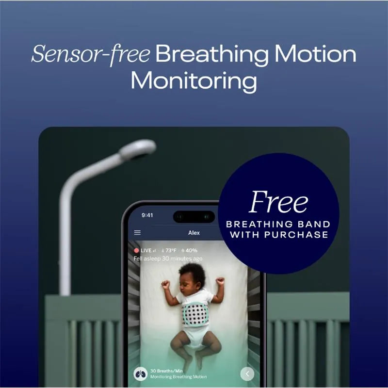 • Breathing Motion Monitoring: Monitor your baby's breathing and movements without sensors. Our Breathing Band (included) works with the Pro Baby Monitor to detect breathing patterns and send alerts if baby needs you