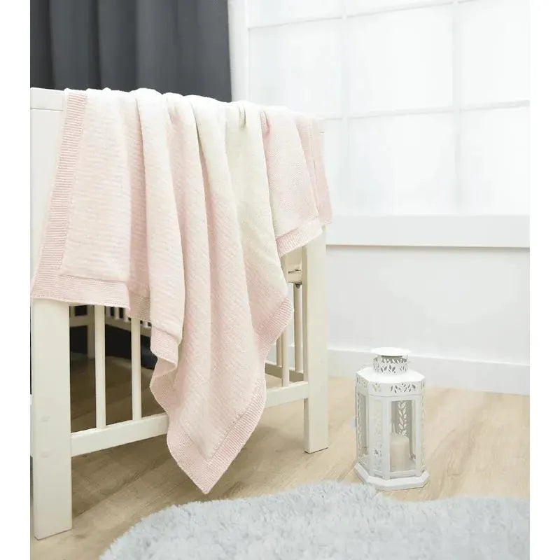 This beautiful baby blanket measuring 85 x 100cm is suitable for use in a stroller or in a child seat. Even the sweet baby bed is warm and decorative at the same time. It is made of fine knit and particularly soft. The two-tone knitted pattern in a striped look gives the blanket a beautiful charm.