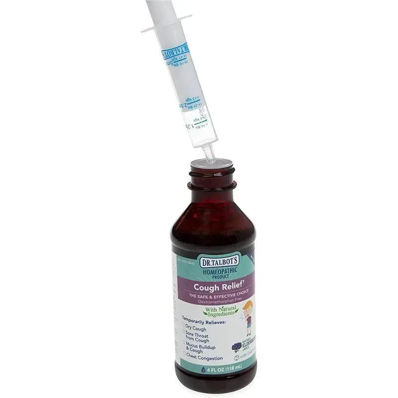 Formulated with a combination of homeopathic actives and cell Salts, Dr. Talbot's cough relief Will have your child feeling better in no time. Your child will love the fruity flavor and you'll love the quick relief Our formula gives your little one!