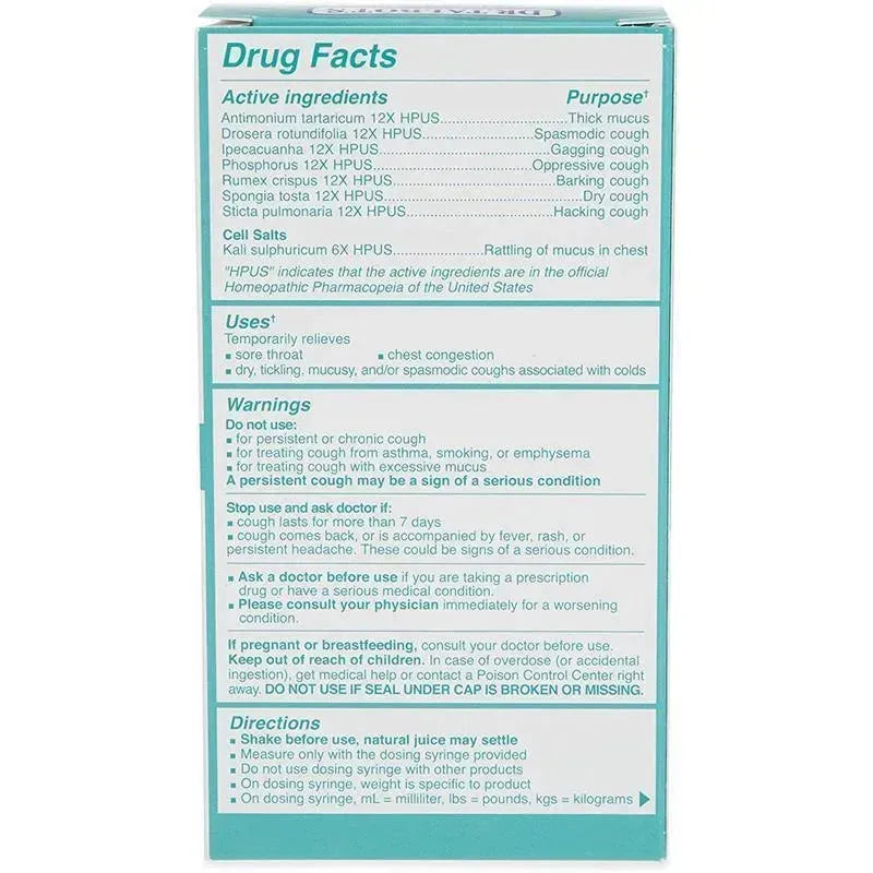 Active ingredients like common Sundew and curly Dock alleviate your child's cough. Cell Salts such as kali sulphuricum soothes that bothersome rattling in your little one's chest.