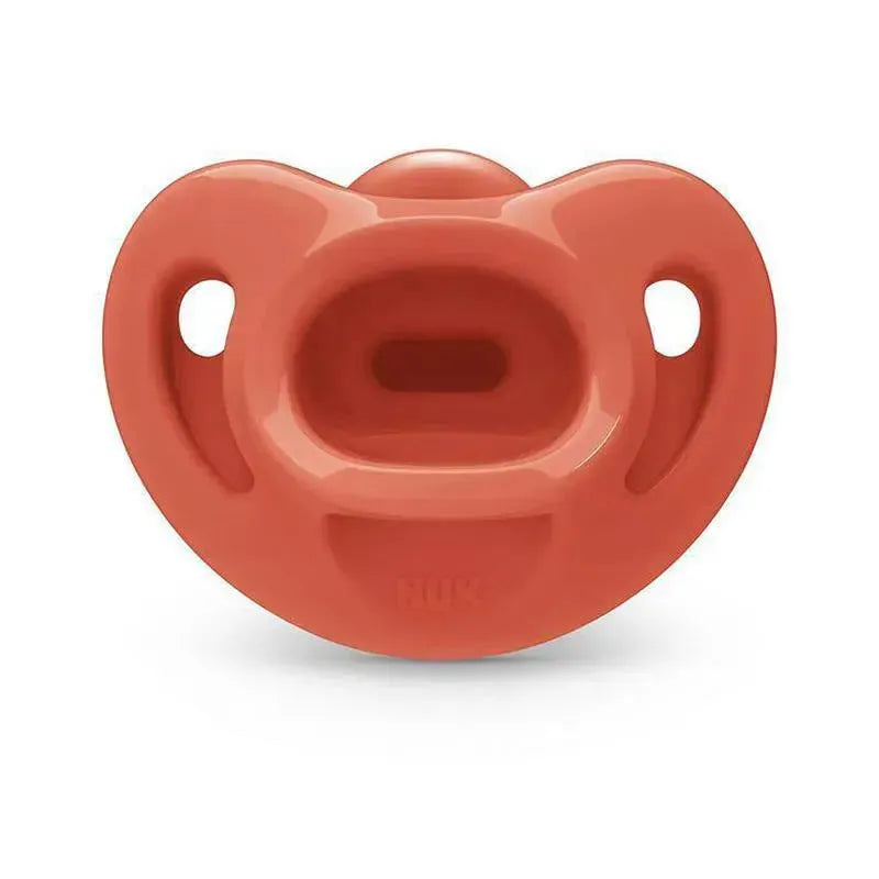 NUK Comfy™ Pacifiers feature a one-piece 100% silicone design that gently contours to baby's face. The heart-shaped shield fits perfectly under baby’s nose for easier breathing and to prevent irritation. The unique, breast-like nipple naturally fits baby’s palate and helps promote healthy oral development. Invented over 60 years ago by pediatric dentists and doctors, NUK orthodontic pacifiers are modeled after the natural shape of mom’s nipple while breastfeeding, creating an easy transition from breast to pacifier and back. The NUK® Comfy™ pacifier is made of 100% medical-grade silicone, and is BPA-free and dishwasher-safe (top rack only).