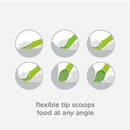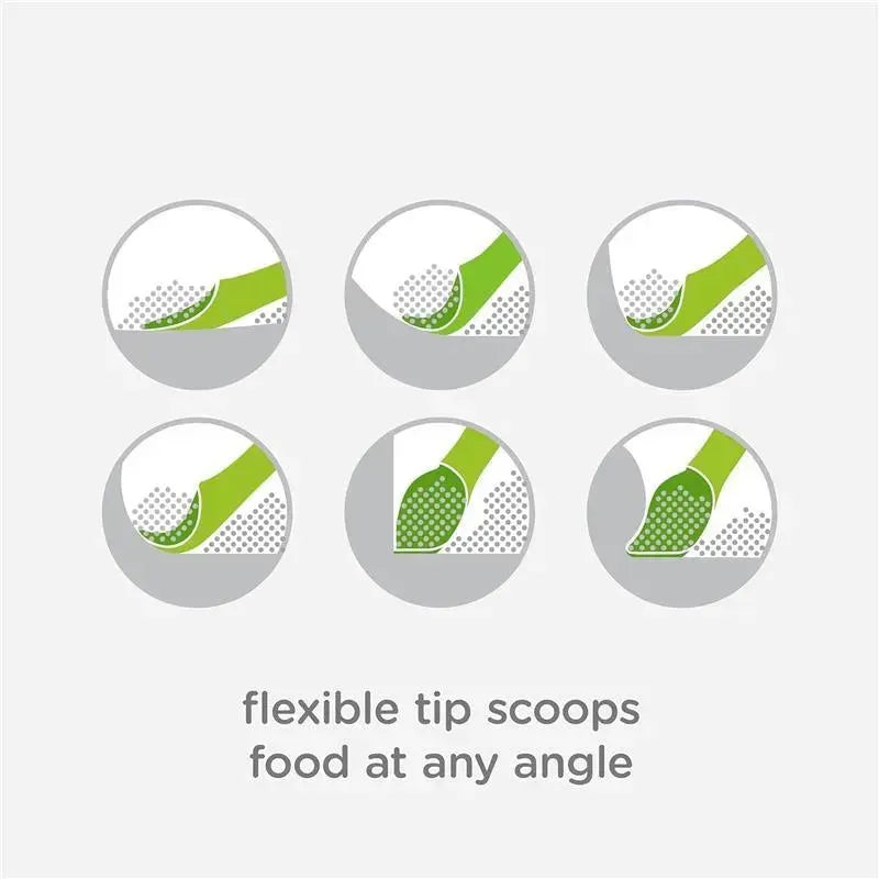 INNOVATIVE DESIGN: Inspired by natural plant elements, the leafy flexible silicone tip enables scooping food at any angle. Spoon base allows for hygienic, upright placement on any surface, keeping the spoon clean.