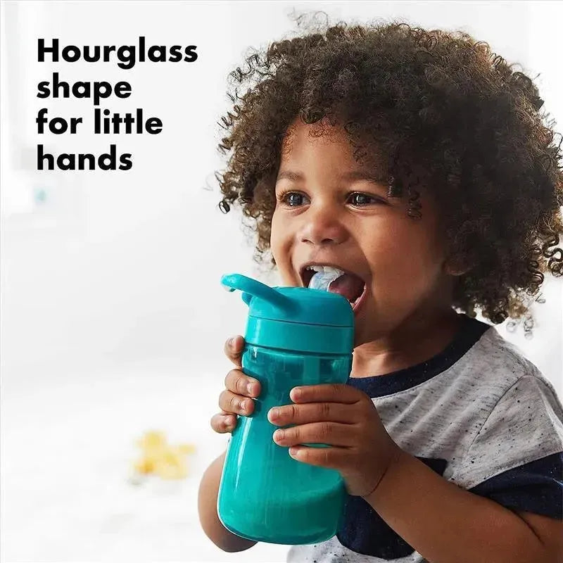 Staying hydrated on the go doesn't have to be hard. With the OXO Navy Tot Adventure Water Bottle, you can let kids sip without worrying about making a mess. This 12-oz water bottle features a patented, spill-proof straw that helps put an end to leaks, drips and dribbles. The bite valve opens the moment your child's lips touch the straw, so it's easy for kids who want to do everything on their own. Tots can open the straw lid with a twist, while grown-ups will have no trouble separating the two-part hinged cap for a thorough cleaning. The bottle's hourglass shape fits just right in little hands, so kids can carry it anywhere. The flex-tip hook attaches securely to diaper bags, backpacks and more, so it's a snap to bring this bottle with you on all your adventures.