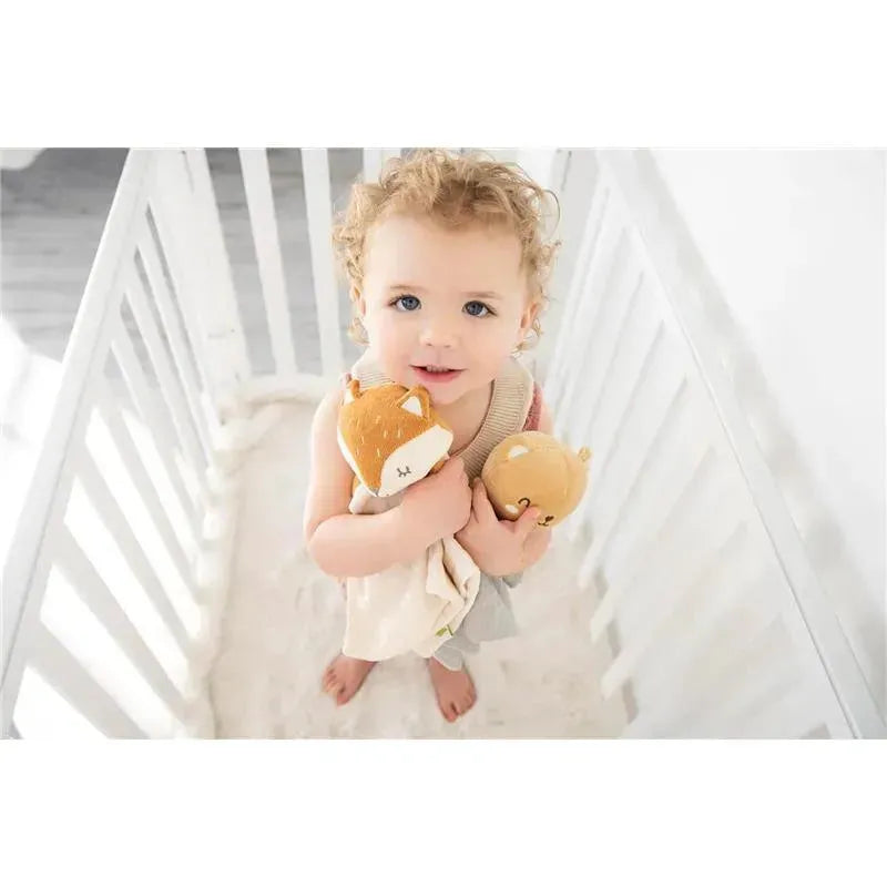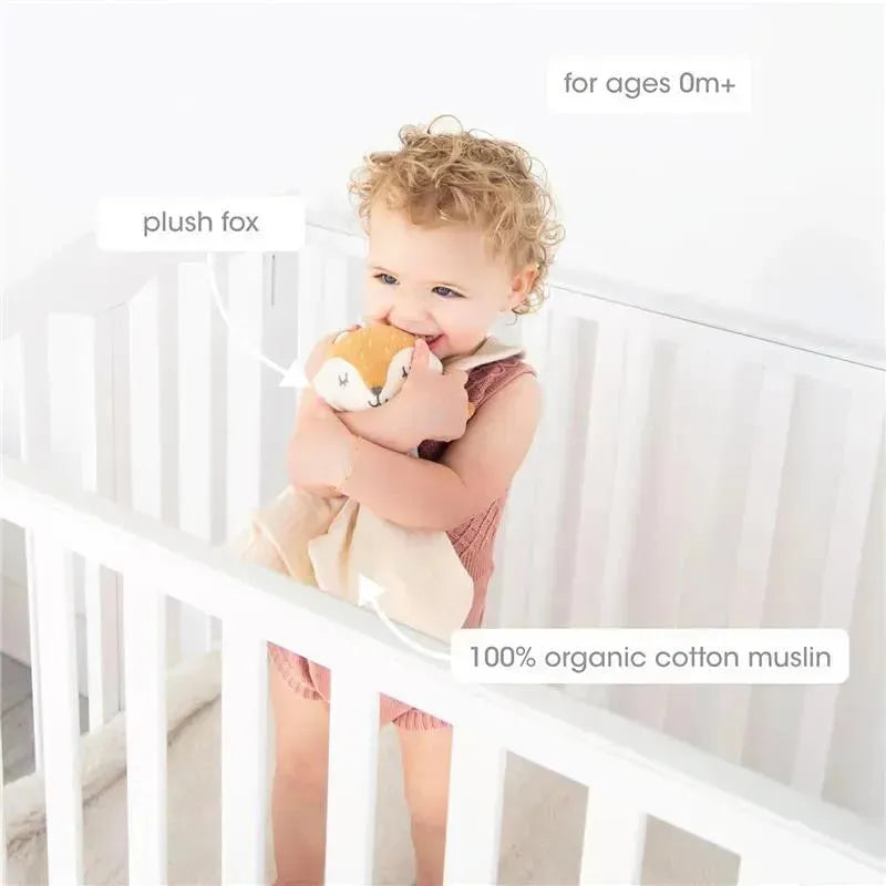 Irresistibly Cute: Made with 100% organic cotton and cotton muslin, our modern snuggle toy features a neutral-colored muted orange fox head with movable arms and a soft, huggable muslin cream-colored blanket, it's friendly face is sure to capture your child's heart.