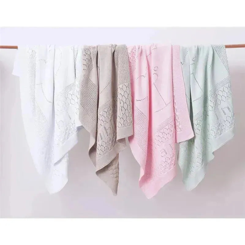Introducing our irresistibly soft pointelle signature blanket, designed for your baby's comfort. Made from 100% cotton, it's gentle on delicate skin and perfect for snuggling during naptime or on the go. With its classic design and generous size, it's a versatile essential for any nursery. Machine washable for easy care.