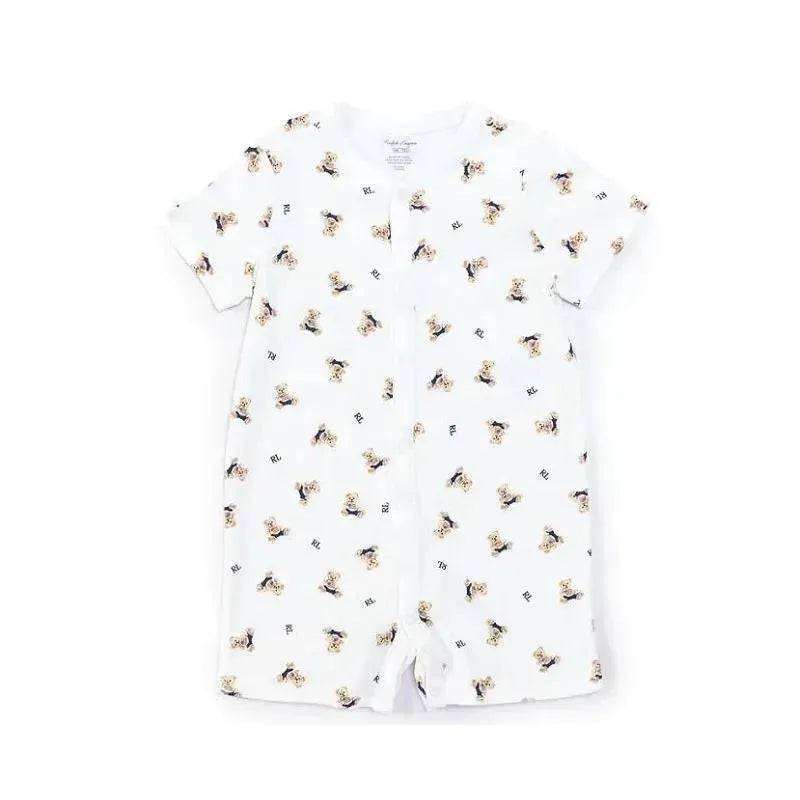 Polo Ralph Lauren Baby - Short-Sleeve Polo Bear Shortall, White/Blue