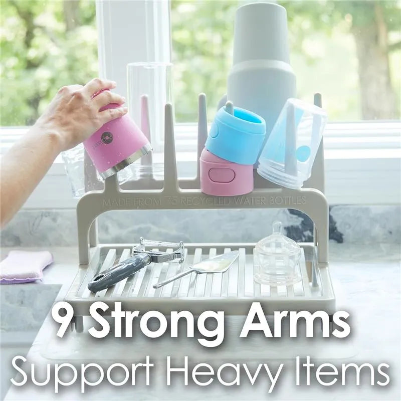 The ventilated drying surface and elevated platform streamline airflow, hastening the drying process. And the best part? You can rest easy knowing your drying rack is as safe as it is practical. Made from food-safe recycled water bottles, PopYum has ensured that it's free from BPA, BPS, latex, lead, nitrosamines, PET, phthalates, PVC, and TPE.