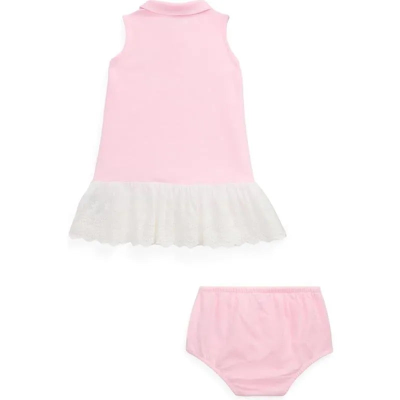 Ralph Lauren - Baby Girl Sleeveless Oxford Mesh Polo Dress With Embroidered Hem, Carmel Pink