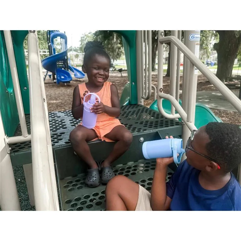 Picture yourself, the busy parent, breezing through cleanup as this durable bottle is both dishwasher and freezer safe. This sweat-proof tumbler is not just a hydration solution but a reliable partner for your young adventurer, making a positive contribution to a more sustainable environment, as it’s made from 90% recycled stainless steel. Through all the excitement and adventure, Re-Play's 12oz insulated stainless steel water bottle remains a constant, reliable companion.