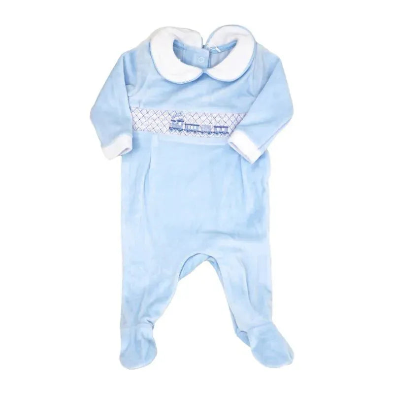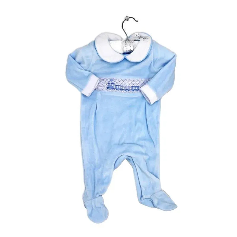 Rose Textile - Baby Boy's Smocking Train Velour Coverall