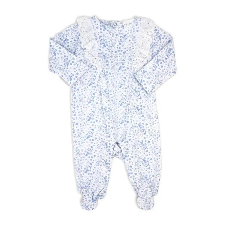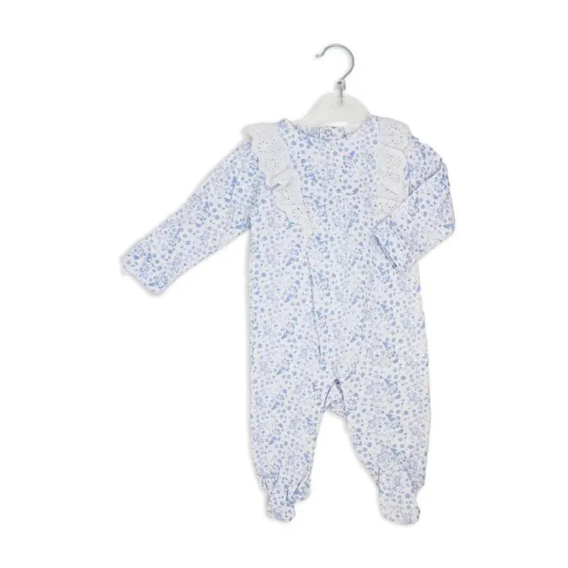 Rose Textile - Baby Girls Blue Floral Sleepsuit