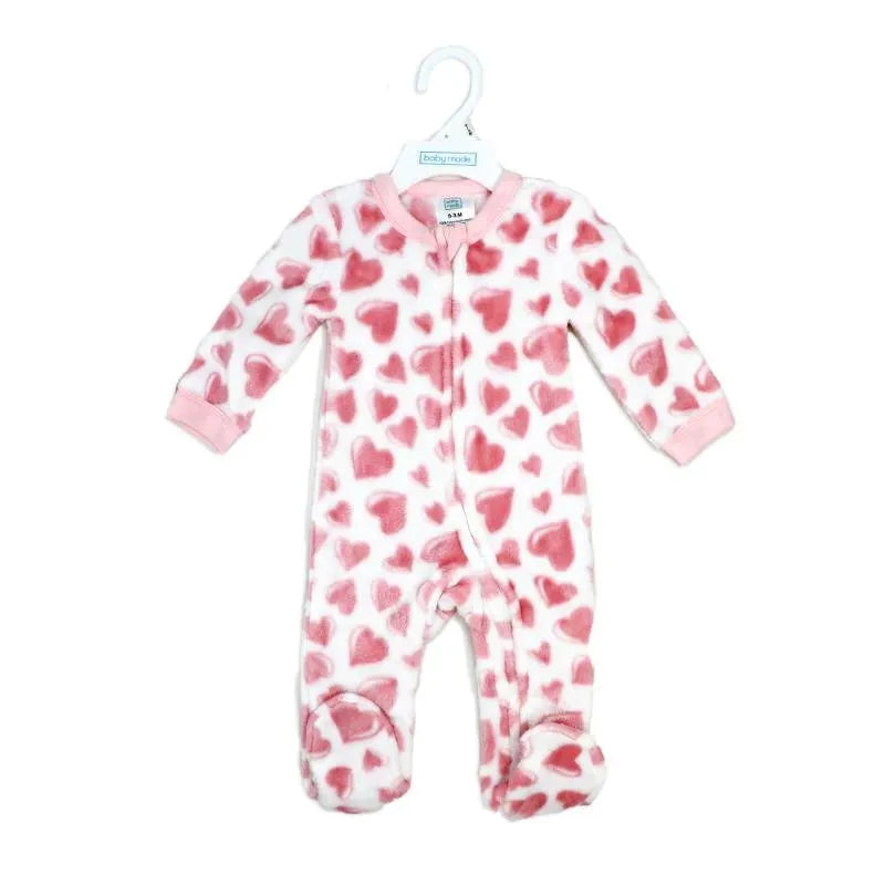 Rose Textile - Baby Girls Pink Hearts Printed Fleece Sleeper