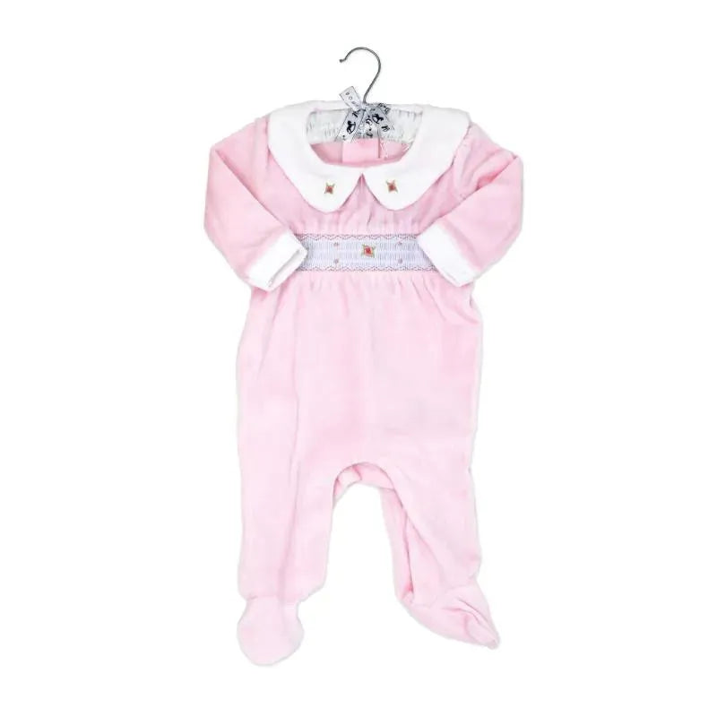 Rose Textile - Baby Girls Smocking Floral Velour Coverall