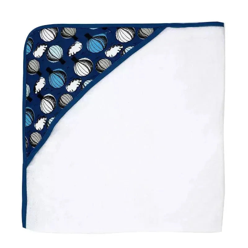 Available in hello world, hot air balloon, raccoon and birch and bear themed hooded towels