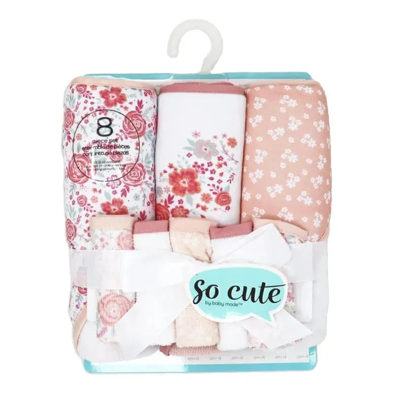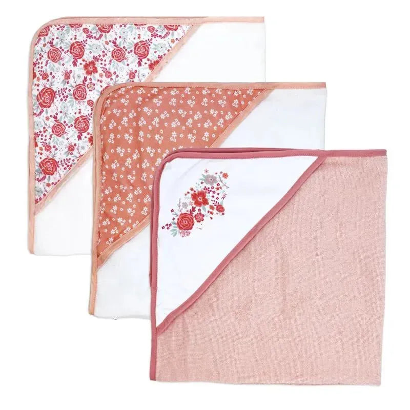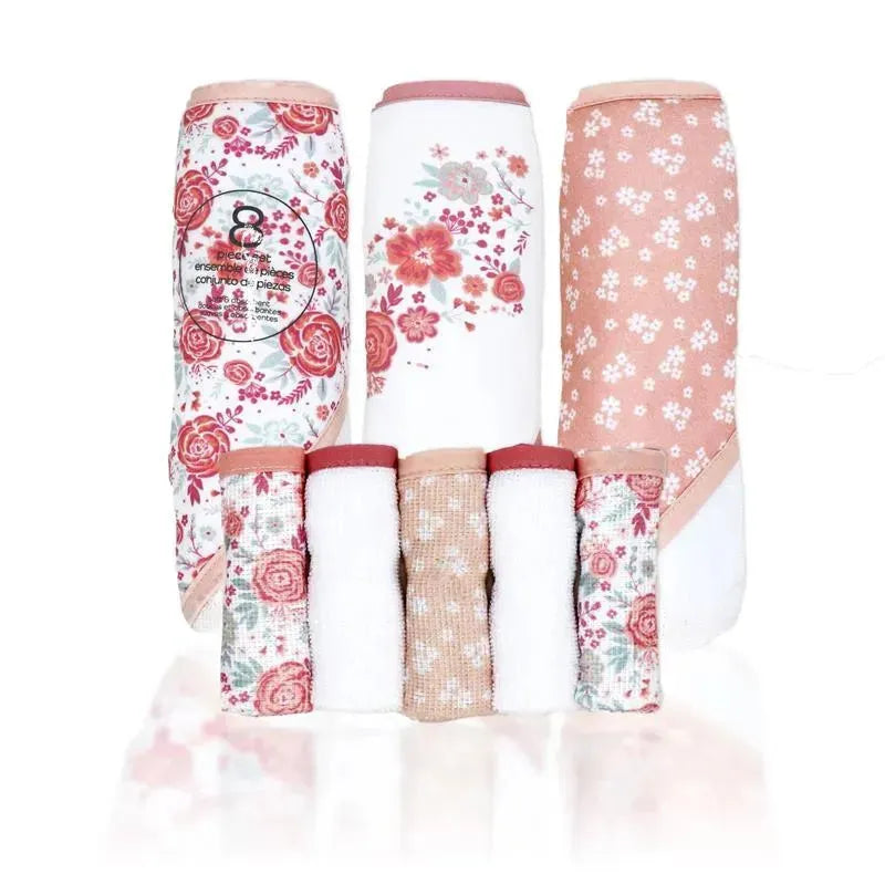 Rose Textiles - 3 Hooded Towels W/ 5 Washcloths, Pink Bouquet
