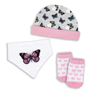 Rose Textiles - 3 Pcs Socks, Hat And Bib, Pink Butterfly