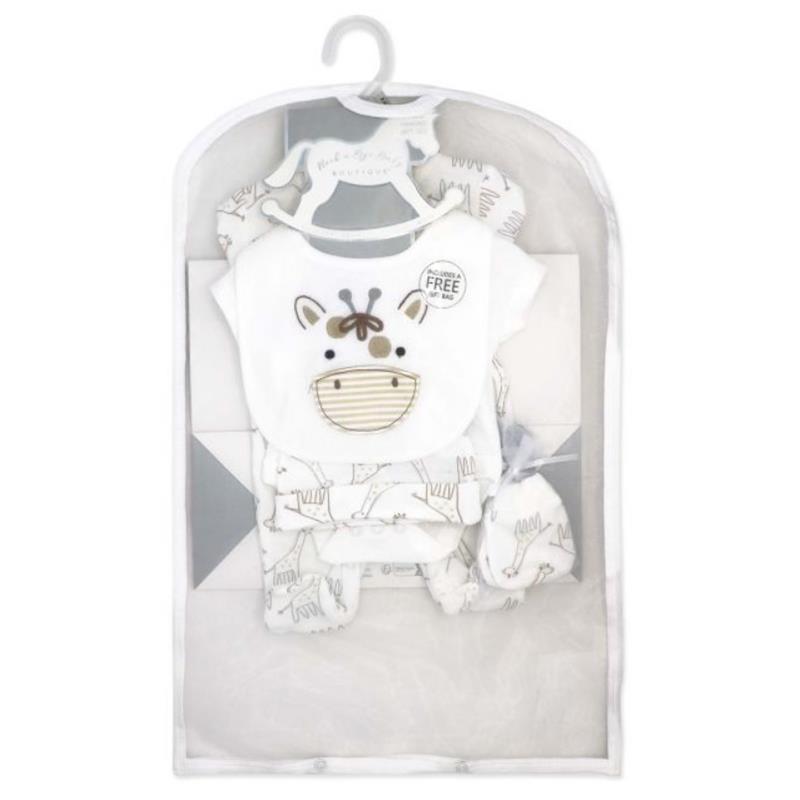 Set includes: Sleeper, Bodysuit, Hat, Mitts, and Bib
