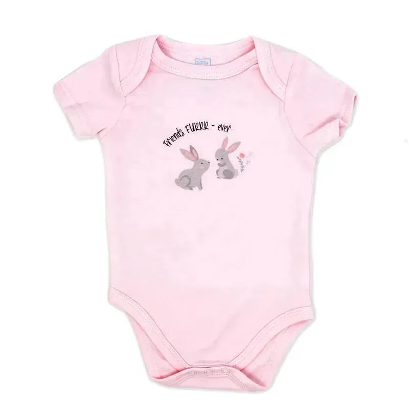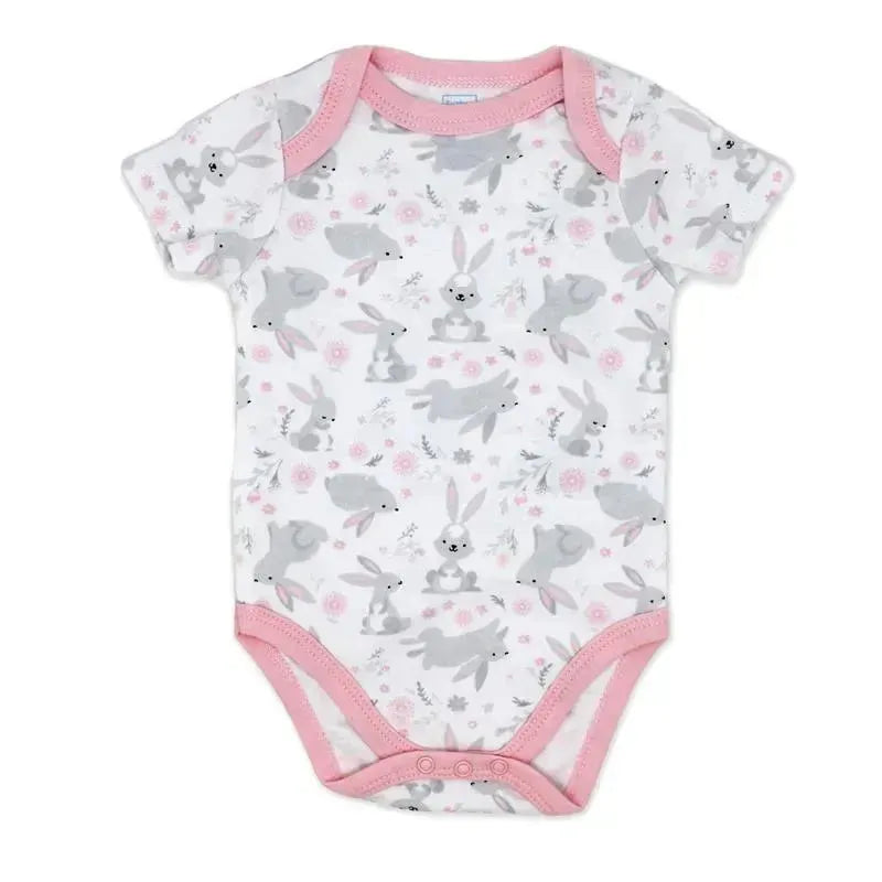 Discover adorable comfort with our Girls 3 Pack Bodysuit: Bunnies collection. Crafted from a blend of 60% cotton and 40% polyester, each set includes three short-sleeve bodysuits designed for utmost softness and durability.