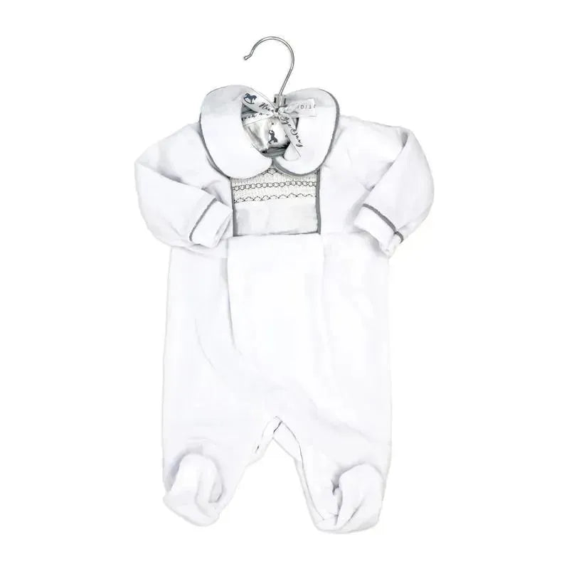 Rose Textiles - Neutral Velour Coverall, Smocking