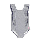 RuffleButts - Baby Girl Stripe Waterfall One Piece, Navy