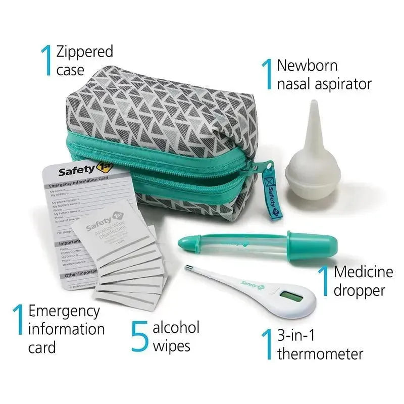 The healthcare on-the-go kit by Safety 1st contains the essential health items you'll want to have on hand for baby while on the go. This kit gives you a stylish and easy way to keep baby's healthcare items organized with the zippered case to keep everything safely stored inside. It also easily reverses from a standard pouch to a pencil style case. With a 3-in-1 thermometer, nasal aspirator, and more, You'll be ready wherever the road takes you.