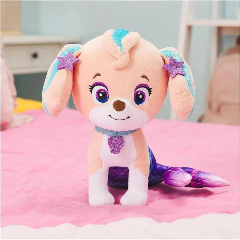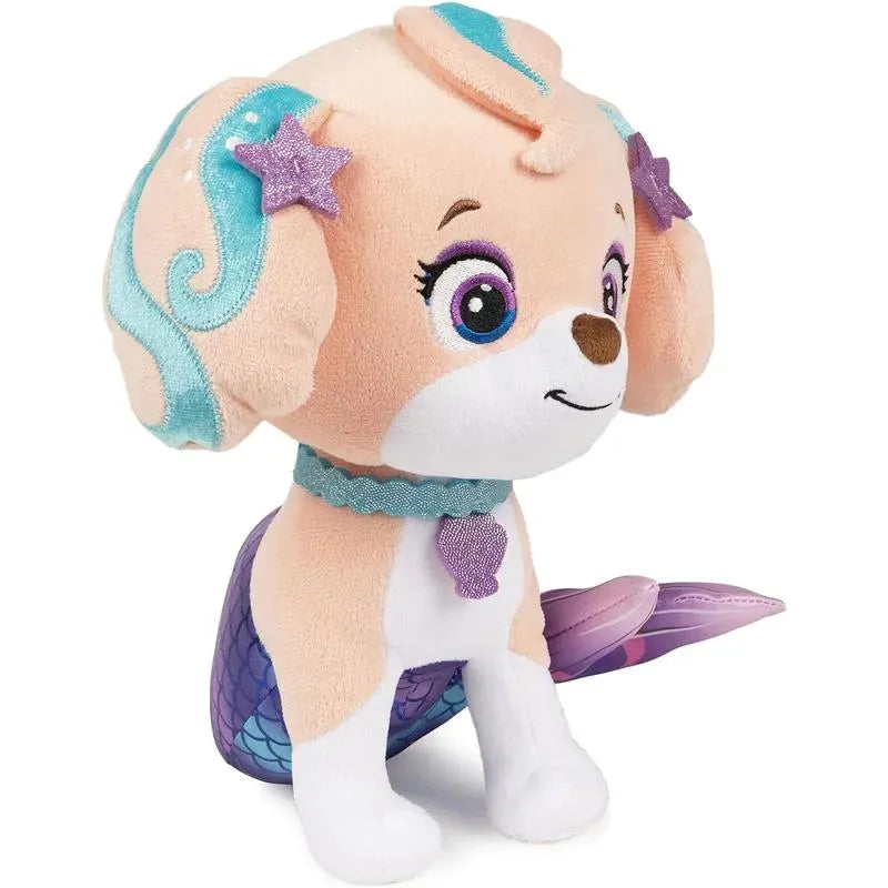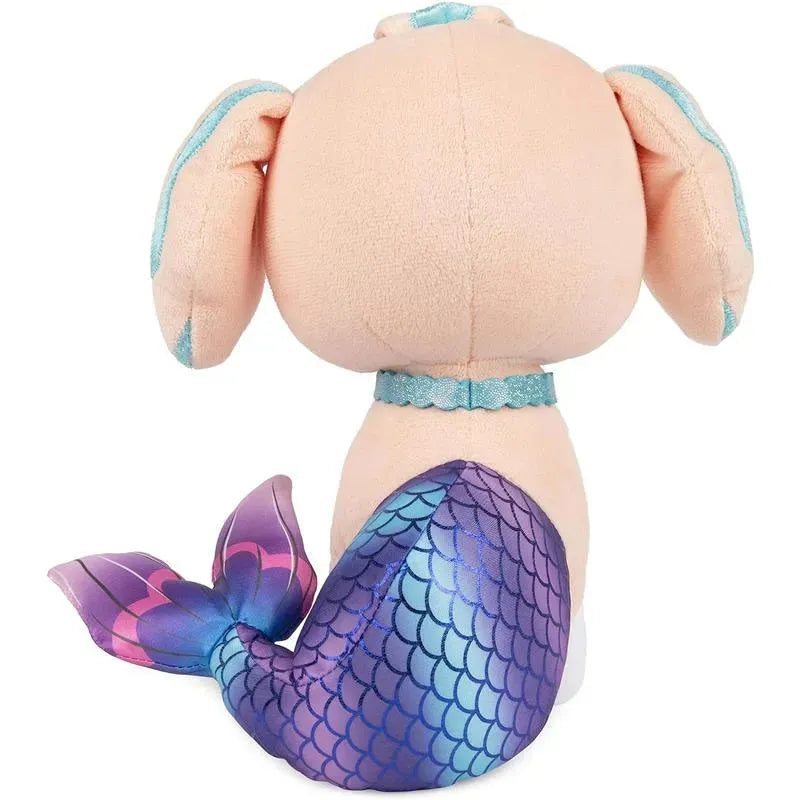 CORAL MERPUP PLUSH: This 9” half-puppy, half-mermaid plush features Coral the mer-pup with show-accurate details: blue streaks on her floppy ears, sparkly star and shell details, and a large pink, blue, and purple mermaid tail with metallic details.