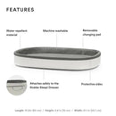 FEATURES - The changing pad is water repellent, removable & easy to clean. With protective sides & a padded mattress, it’s also soft to baby’s skin?.