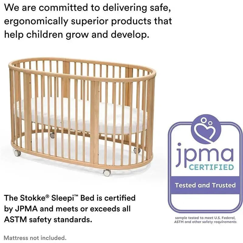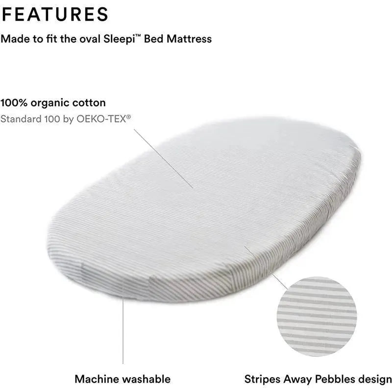 SLEEPI COLLECTION - The fitted crib and bed sheet with elastic all the way around is made to fit the oval Sleepi bed mattress. Part of the Stokke Sleepi bedding collection, it’s compatible with the Stokke Sleepi Mini and Crib/Bed.