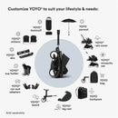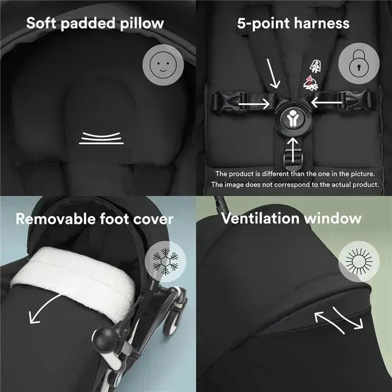 This pack is ideal for parents looking for a stylish, practical solution, offering features like an extendable anti-UV canopy with a closeable ventilation window, a 5-point harness, and a 2.5?cm mattress for added comfort. It folds seamlessly with the YOYO³ frame, making it suitable for air travel and compact enough