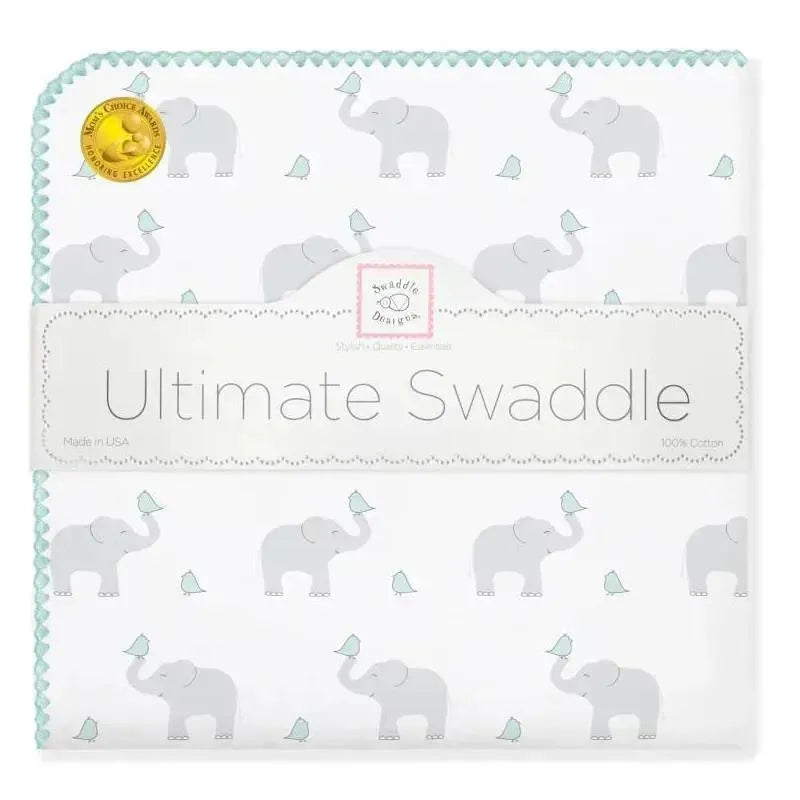 Swaddle Designs - Ultimate Swaddle Blanket, Elephant & Chickies, Seacrystal