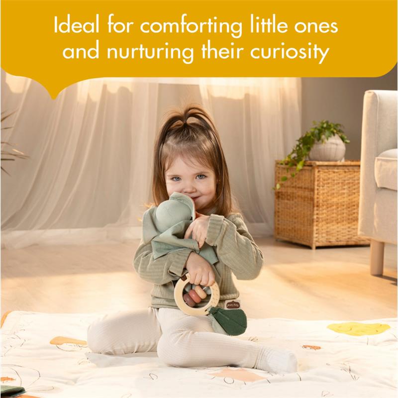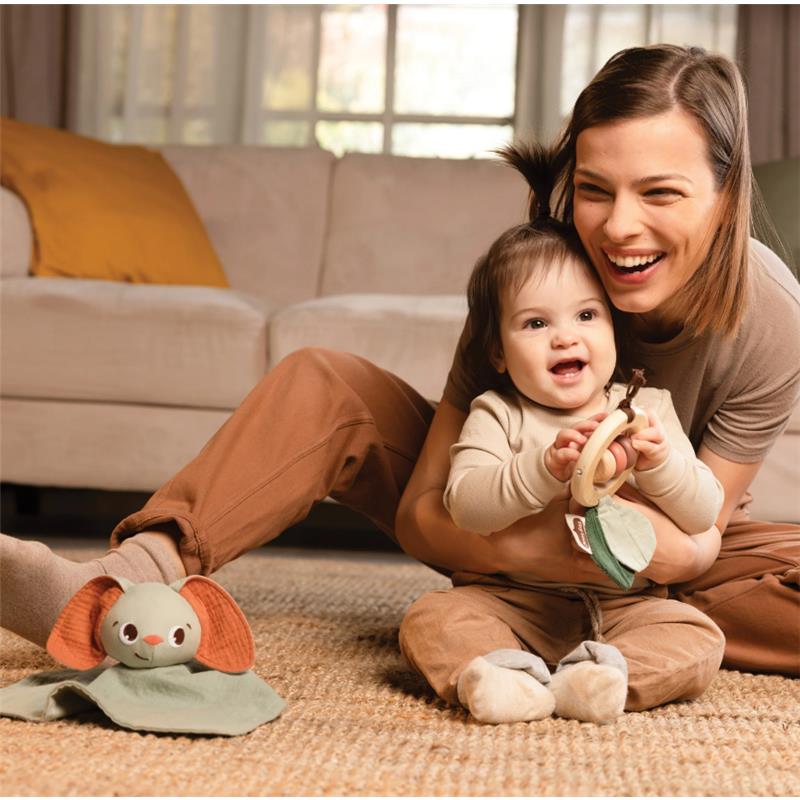 Nestled within the set, you will uncover a super-soft bunny lovey. More than just a toy, this bunny is a companion that supports your baby’s emotional and sensory growth. Its soft texture invites exploration, promoting bonding and early communication while introducing your baby to the concept of object permanence.