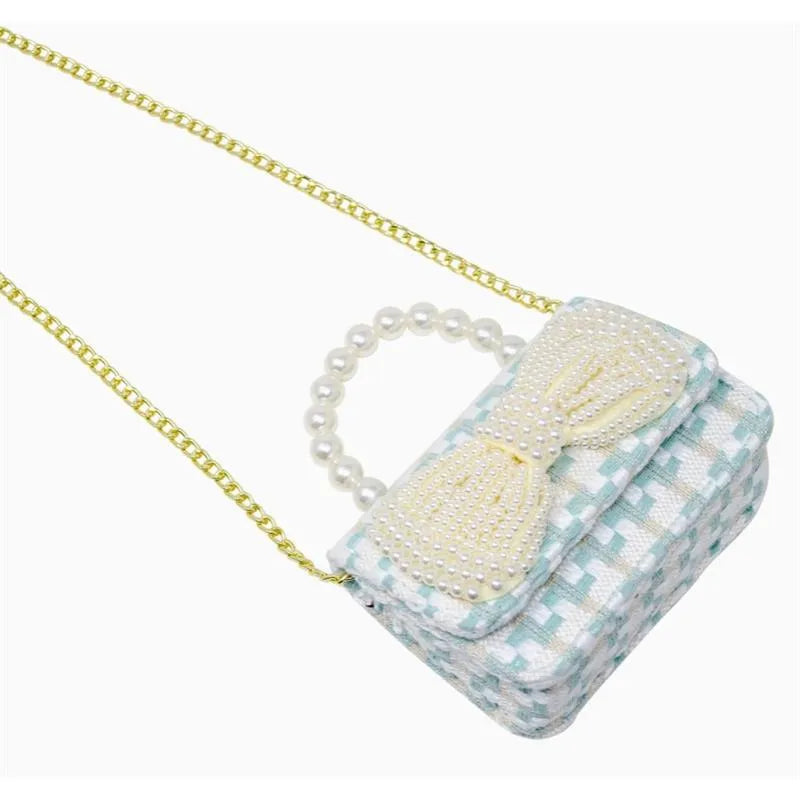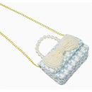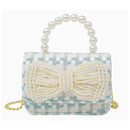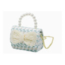 Every thread intricately woven together, whispering tales of timeless style and elegance. The pearl handle, an epitome of sophistication, feels like a string of cool, smooth pearls in the palm of your hand, adding an undeniable allure to the bag. And then there's the pièce de résistance, the large pearl bow patch, adding a dash of whimsy and playfulness to the classic tweed.