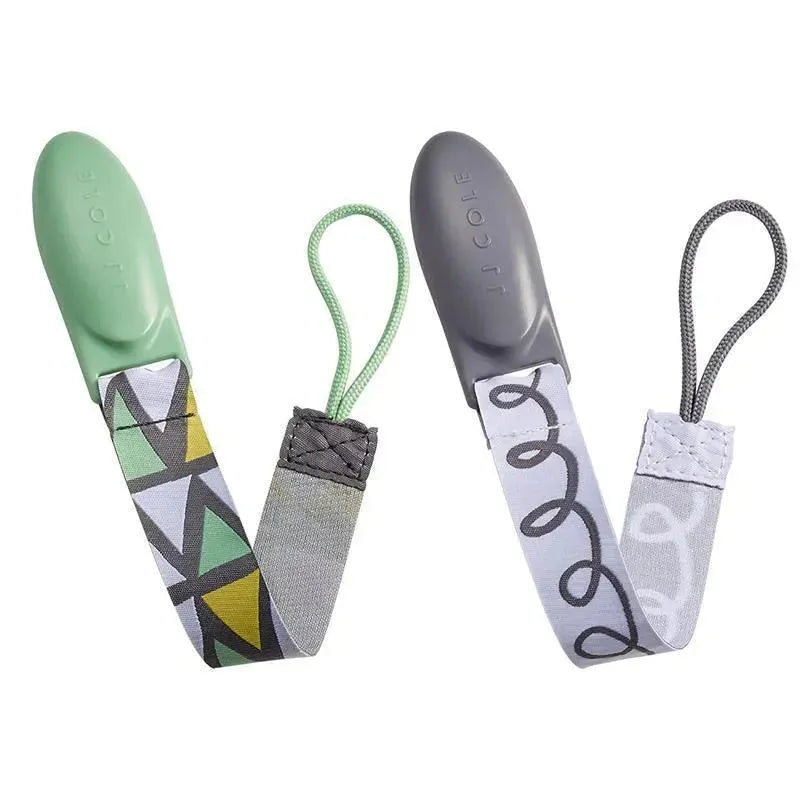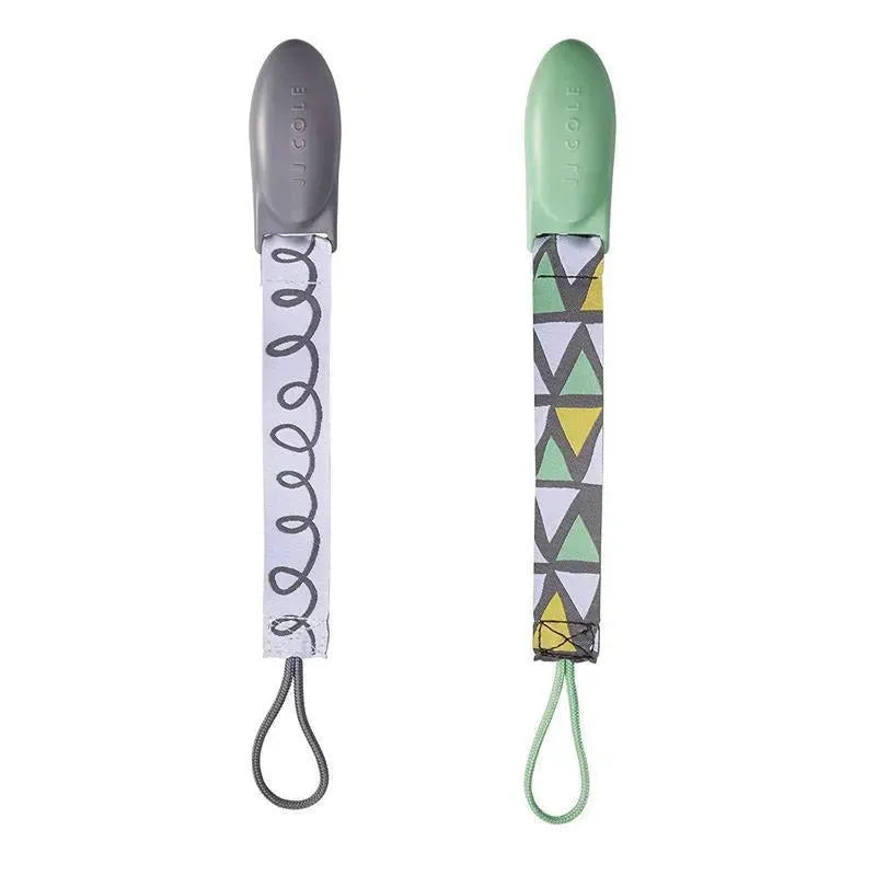 Tomy JJ Cole 2 pk Pacifier Clips, Green/Gray