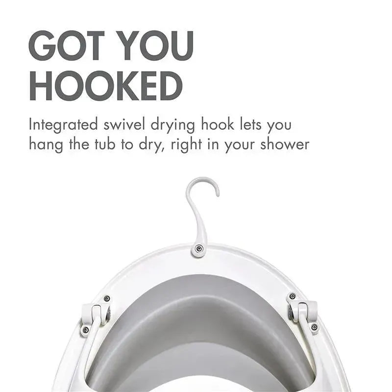 EASY STORAGE: This bath tub for babies features a collapsible slim one-piece design with hook making storing easy