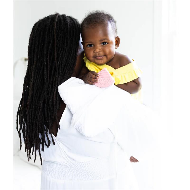 Let's dive into the world of Toothi, a revolutionary teether that attaches securely to bibs, blankets, and loveys. Imagine the bliss of keeping comfort within arm's reach—always. Picture your family heading out for a fun day trip. With one simple snap, you can attach Toothi to a bib for hands-free relief during the car ride. Or perhaps, it's cuddle time? Just clip Toothi onto a blanket for a soothing, mess-free comfort. And when those sleep struggles kick in? Secure it to a lovey for self-soothing magic within the crib.