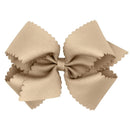 Wee Ones - Classic Grosgrain Hair Bow with Scalloped Edges and Plain Wrap Center, King, Oatmeal